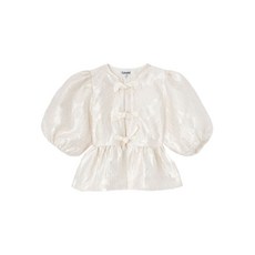 가니 보우 퍼프 소매 블라우스
