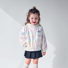 헤이미니 여아용 트윙클 홀로그램 바람막이 점퍼