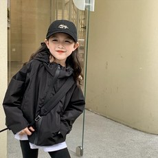 삐삐네옷가게 여아 주니어 해피스마일 블랙 후드 바람막이 자켓