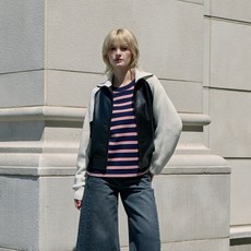 쥬시쥬디 여성용 J 니트 믹스 레더라이크 집업 점퍼 JYJP720B