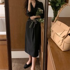 시크힐즈 오피뉴 허리 끈 트임 셔츠 롱 원피스 12239