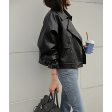 여성용 PU 재킷 가죽 카라넥 아우터 숏 자켓 Women's Jacket 뉴타임즈