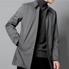 AOKADA 남성 봄 가을 심플 비즈니스 하프 트렌치 코트 슬림핏 얇은 아우터