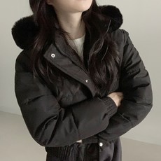 밍크퍼안감/보들따뜻 데이지클로젯 로지 밍크 양털 후드퍼 크롭 숏패딩 / 겨울 두꺼운 아우터 여성 여자 긴팔 자켓 따뜻한 여성 여자 점퍼 단추 지퍼 이중잠금 한파대비 기본템