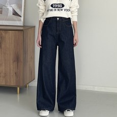 [행복여] 사선 스티치 포인트 본딩 기모 생지 와이드 데님 청바지