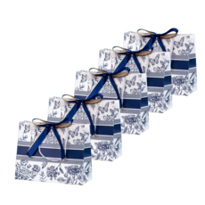 휴고잉 플라워 패턴 쇼핑백, 네이비라인, 5개