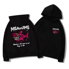 [XUMAO]트렌디 샤크 프린트 겨울용 여성 심플 앤 세련된 후드티 털이 들어간 스포츠 후드티