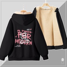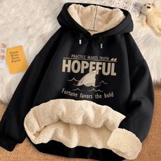 [XUMAO]두께 증가 프린트 양털 루즈 핏 여성 후드티 패션 트렌드