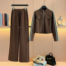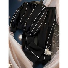 2026 여성용 시즌 감성 뉴 블랙 스포츠웨어 화이트 레이스업 지퍼 스탠드 카라 후디 + 높아 보이는 웨이드 루즈핏 팬츠