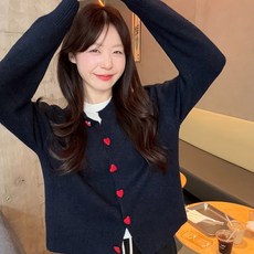 Mars캐주얼 컬러풀 버튼 하트 디자인 데일리 베이직 사계절 라운드넥 여성용 니트 롱 가디건 아우터