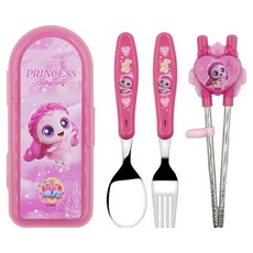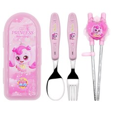 르번 프린세스 캐치티니핑 올인원 교정 젓가락 풀세트, 실크핑, 1세트, 스푼 + 포크 + 젓가락 + 케이스