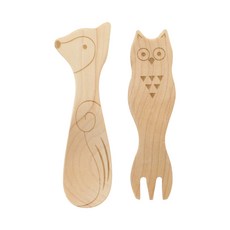 릴팡 네츄럴우드 이유식 요구르트 수저 세트, 혼합 색상, 스푼 + 포크, 1세트
