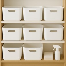 보노하우스 국내 제조 로코스 팬트리수납 정리 손잡이 바스켓, 라이트화이트, M, 8개