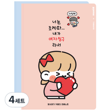 뮤니드 쟈근콩 짱큰콩 뽀시래기 연애커플 노트 세트, 핑크, 블루, 4세트