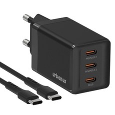 어반어스 GaN 67W 미니 C타입 3포트 PD PPS 초고속 충전기 65W C TO C 케이블 1.5m, 블랙, 1개