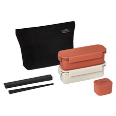락앤락 슬림 1단 도시락 220ml x 2종 + 가방 + 디바이더 + 젓가락 세트, 브릭오렌지+아이보리, 1개