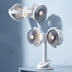 듀얼 헤드 클립형 선풍기 서큘레이터 벽걸이형 무선 다용도 선풍기 분위기 무드등, 화이트