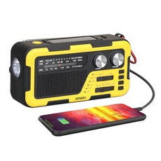 JENMV 휴대용라디오 비상라디오 수동충전 라디오 태양열 자가발전 라디오 FM AM 효도라디오 대용량 LED라이트 TF카드지원 다기능 스피커 MP3 자체안테나 재난방지 라디오, 노란색