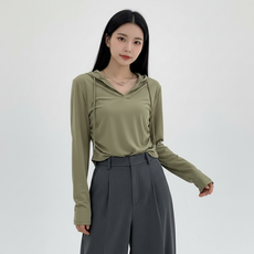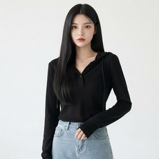 마켓피아 여성용 후드 브이넥 긴팔 티셔츠