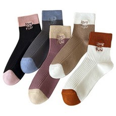 Wenyao 사계절 스포츠 컬러 자수 중목 여성양말세트 5개입