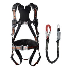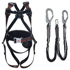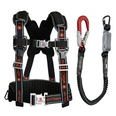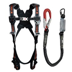 몽크로스 건설현장 추락방지 자동카라비너 적훅 AL 엘라더블 죔줄 그네식 안전벨트 DMS-201-1 BY, 블랙 + 오렌지, 1개