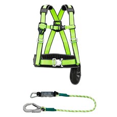 동명 원터치 허리 버클 상체식 벨트 안전대 + 싱글 죔줄 세트 DMS-106, 형광그린 + 형광, 1세트
