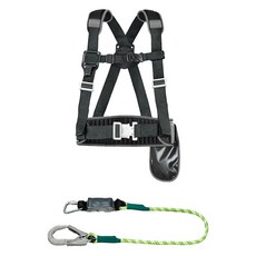 동명 일반형 상체식 안전벨트 DMS-106 + 자일로프 싱글 죔줄 세트, 검정 + 형광, 1세트