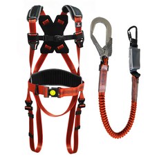 몽크로스 고급형 안전 건설현장 추락방지 자동카라비너 적훅AL 엘라싱글 죔줄 그네식 안전벨트 DMS-201-1 B, 적흑, 1개