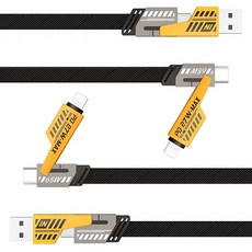BuyChoo PD 27W-맥스 4 인 1 멀티 인터페이스 급속 충전 케이블, 2개, 1m, 블랙 + 옐로