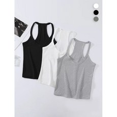 화성여성용 끈나시 레이어드 스판 이너 런닝 3p 화이트+블랙+그레이민소매 티셔츠V넥골지