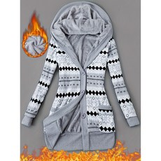 [XUMAO]트렌디 샤크 프린트 겨울용 여성 심플 앤 세련된 후드티 털이 들어간 스포츠 후드티