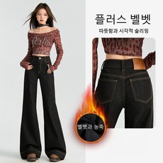 DISBURDEN여성 기모 도톰 부츠컷 청바지 따뜻한 데님 나팔바지 겨울 긴바지