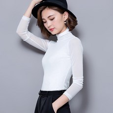 VergoPerco 여성 봄가을 티셔츠 터틀넥 셔츠 섹시 편하고 신축성 좋은 원단 6035