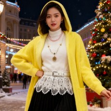 레몬 옐로우 미디엄 롱 소프트 찹쌀 스킨 스웨터 코트