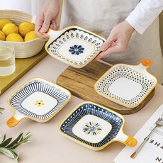 BLOWFISHFUGU 아이디어 북유럽 식기 예쁜접시 12인치 생선접시 손잡이 접시 양손 불판 9.25인치접시, 4개, 생선접시a+생선접시b+생선접시c+생선접시d