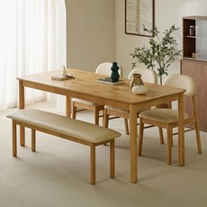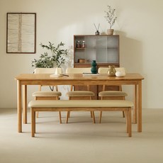 소라 원목식탁 6인용 1800 + 의자3p + 벤치 세트 방문설치, 내추럴, 일반 3 + 벤치 1