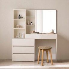 파로마 미누 와이드거울 수납선반 화장대 + 스툴 세트 방문설치, 화장대(화이트), 스툴(트위드 브라운)