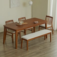 파로마 솔로르 원목식탁 1800 6인용 + B의자3p + A벤치 세트 방문설치, 윌넛, 일반 3 + 벤치 1