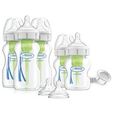 닥터브라운 내추럴 플로우 옵션+ 와이드-넥 젖병 2종 세트, 0m+, 3m+, 혼합 색상, 1개