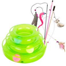 딩동펫 고양이장난감 캣타워트랙 그린 + 낚시대 장난감 4종 A세트, 혼합 색상, 1세트
