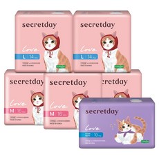시크릿데이 러브 생리대 날개형, 대형, 14개입, 6개