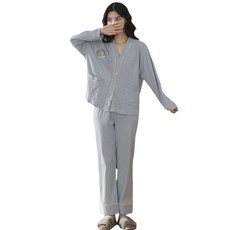 Everkaki 홈 클로스 코튼 여성 잠옷 상하의 세트