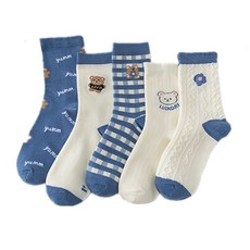 Wenyao 블루 베어 삭스 여성양말세트 5개입 WZ001
