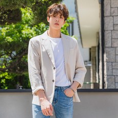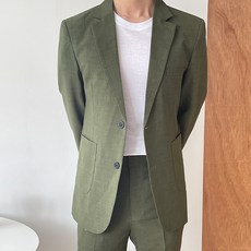 언탭트 남성용 썸머 린넨 투버튼 캐주얼 수트 자켓 + 긴바지 세트