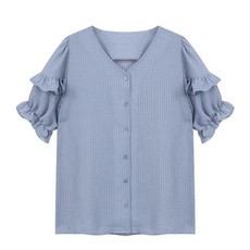 탱커스 허리 라인 둥그나라 셔링 반팔 블라우스