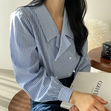 탱커스 스트라이프 카라넥 더블버튼 블라우스