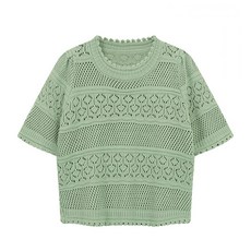 탱커스 여성용 라운드넥 뜨게 스타일 반팔니트