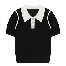 탱커스 여성용 단추 카라넥 블링 반팔니트