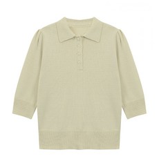 탱커스 여성용 어깨 퍼프 카라넥 칠부 니트