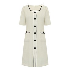 탱커스 스퀘어넥 라인배색 반팔 원피스